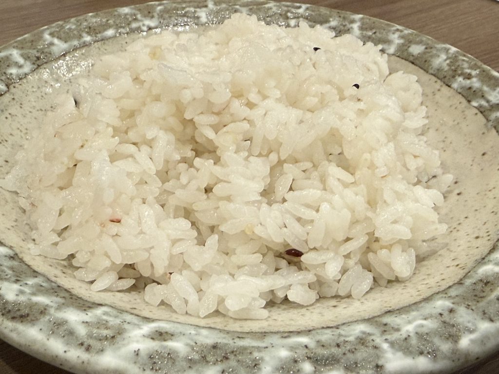 ありがちとは焦がしバジルトマトのこってり系、こちらのお店の人気メニュー。ライスは、北海道産米ななつぼしに、雑穀を混ぜて炊き上げている。