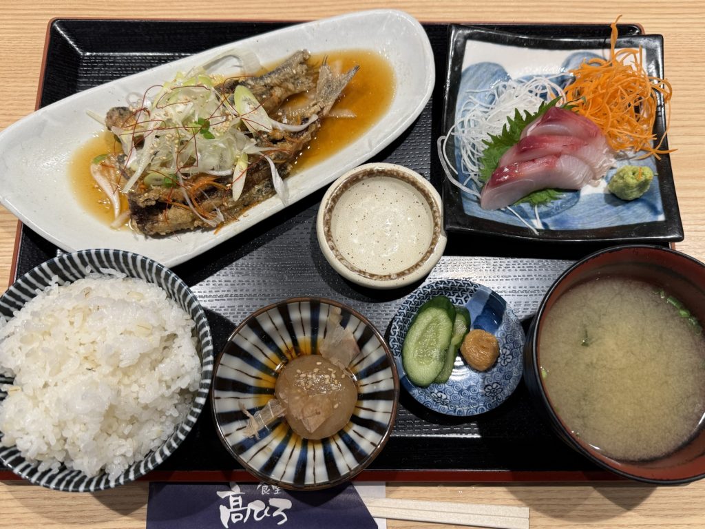 結果、福岡県産鰯の南蛮漬けとヒラマサ刺身定食(1360円税込)を発注。はいドーン。