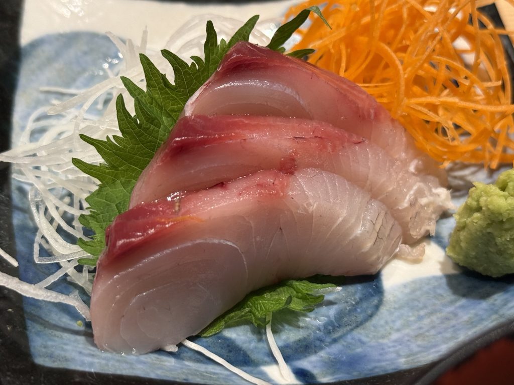 サンプルかと思わせる綺麗なグラデーション、長崎産のヒラマサ。脂がのってしっとりだが、後味あっさりとした味わい。これもいいですな。