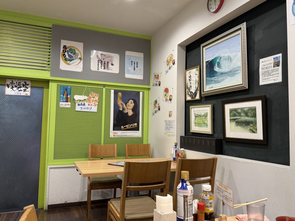人気店で数組待ちだったんだけど、案外早く案内され席に着く。明るい店内で、カウンター席とテーブル席があって40席ほどのキャパかしら。とにかく日替わり含めて、美味そうな海鮮料理なメニューがわらわらーっと。これは悩む。