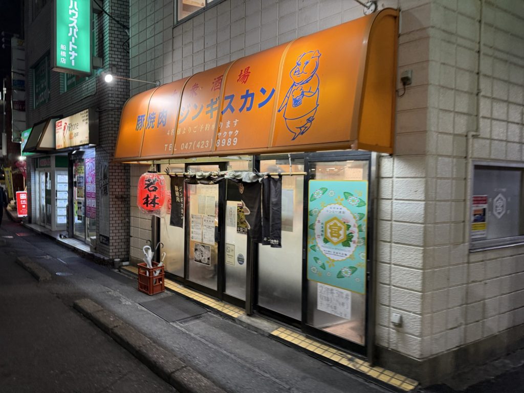 JR船橋駅の北側。駅前のロータリーから山口横丁に入る道沿い。やって来たのは、オレンジの軒先テントが目印、大衆酒場 若林。店名を軒先テントには書かず、赤提灯でアピールしているところが渋い。