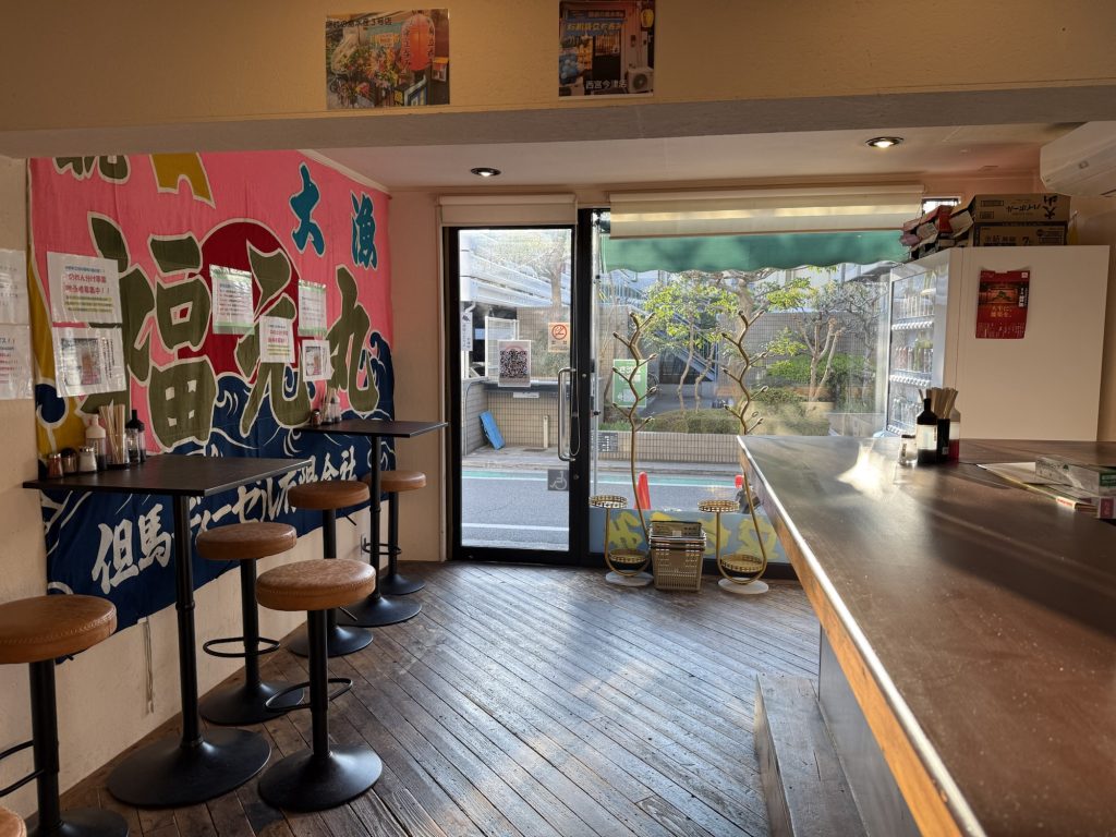 阪神国道の店舗、また十三時代の店舗からすると、天井も空間も広い感じ。入口以外にも、奥に新しい自販機が設置されている。