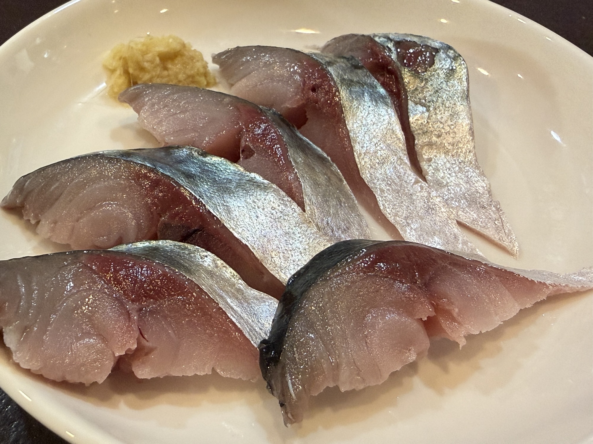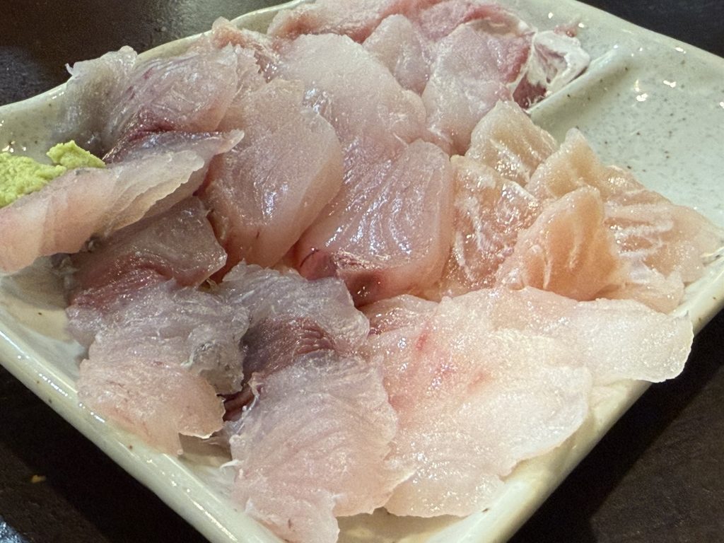刺身盛り合わせの前に、まずは若狭サバ刺身(800円税込)いきましょうか。サバが脂ノリノリなのに、すんごいさっぱりで美味い。