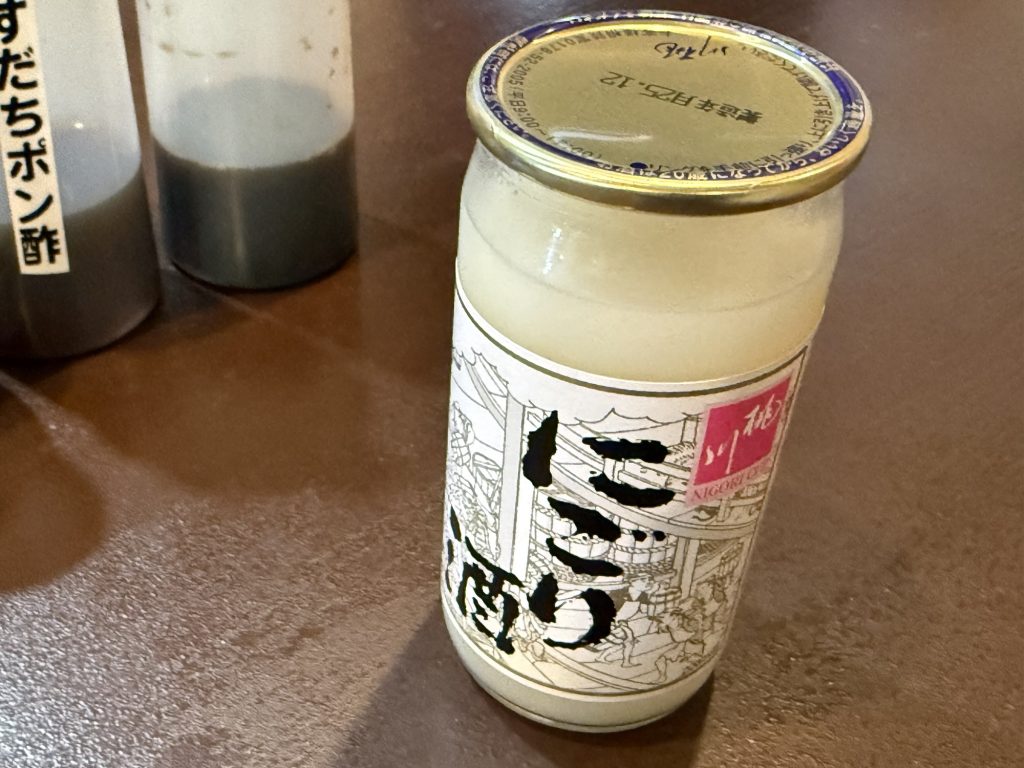 青森、桃川株式会社のにごり酒(500円税込)。あ、口当たりがよくて、全然甘ったるくなくさっぱりいける。これもいいな。