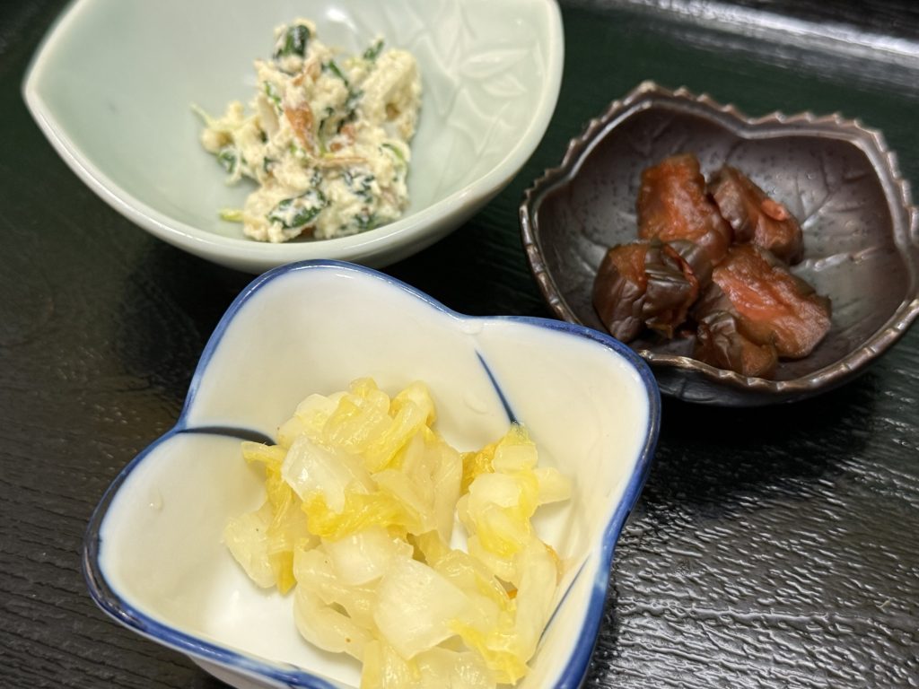 このおからの和え物が甘くて美味い、ちくわに三つ葉のシャキシャキがいい。