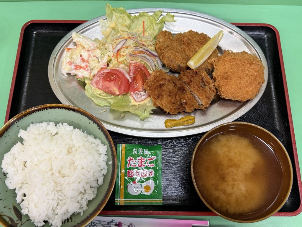 クリームコロッケのトロットロクリームうめ〜、メンチカツのお肉の旨みもジュワ。