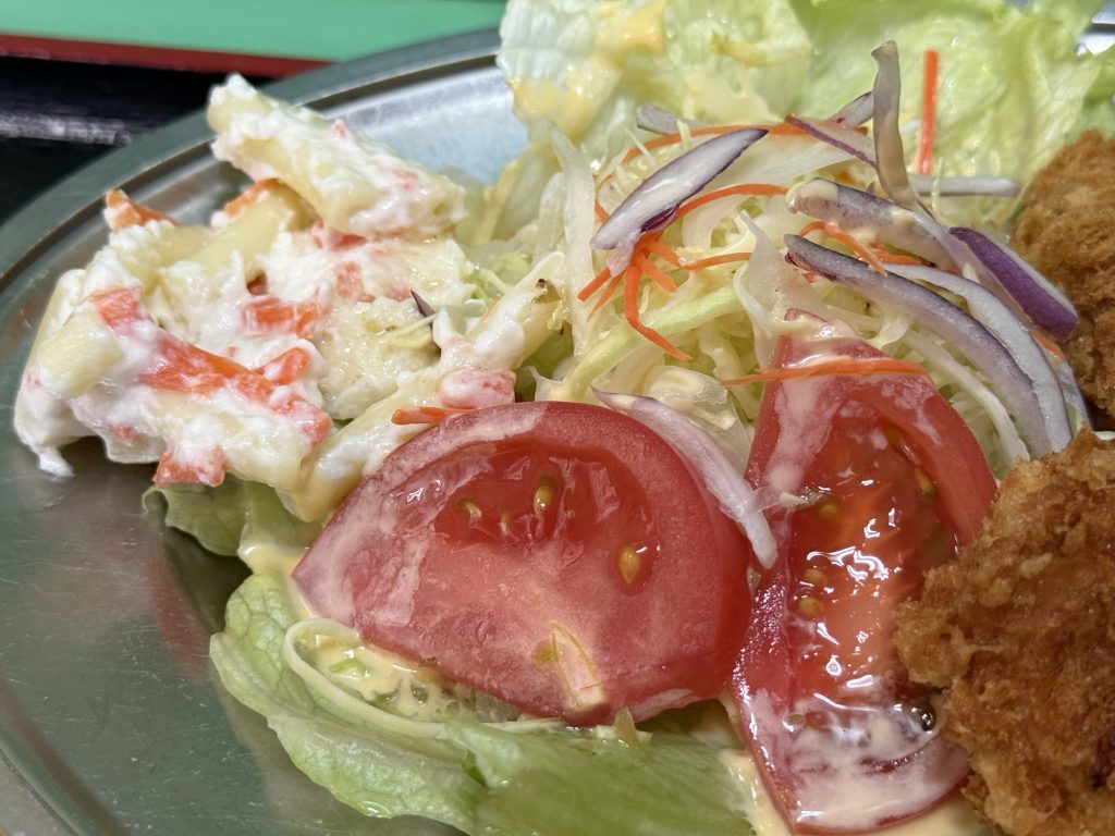 野菜が添え物というよりフライと対等にしっかりと向き合えるボリューム、有難うございます。