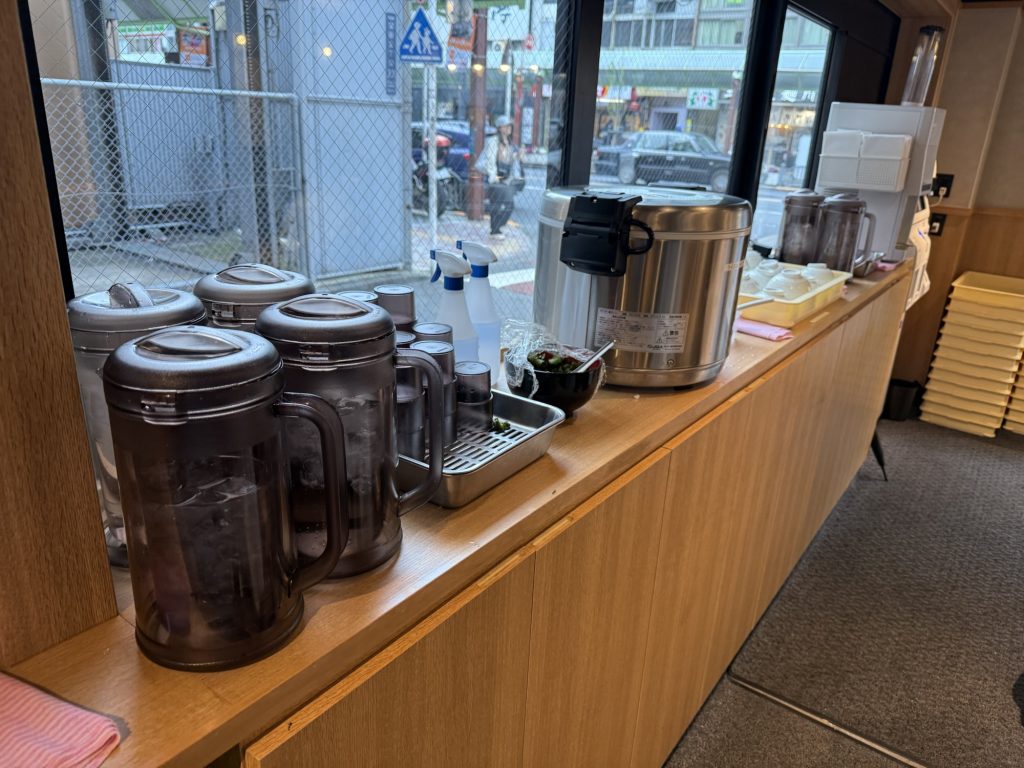 ライスは無料なのでセルフで装いにいくんだけど、漬物のかっぱも添えて。