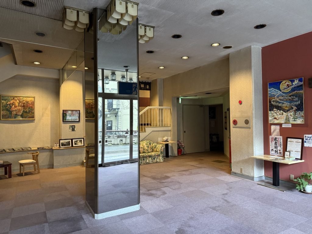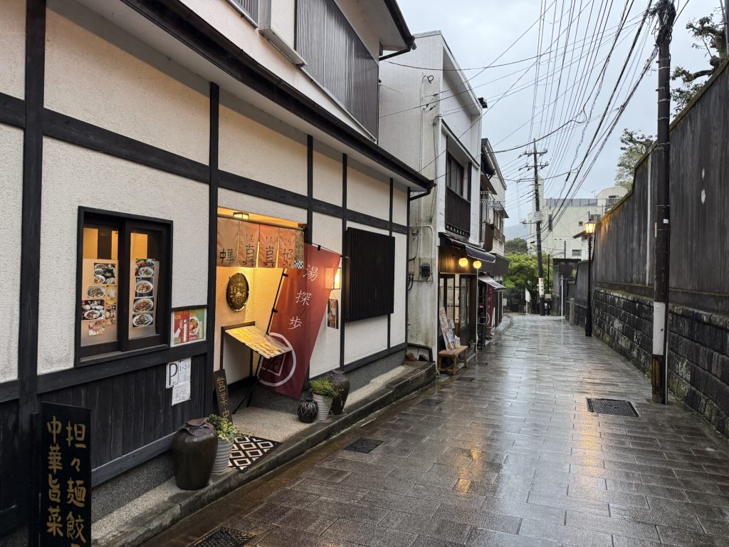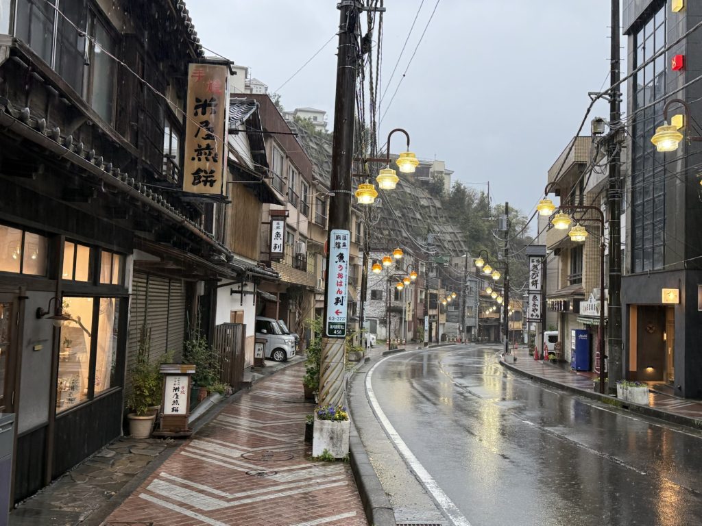 バスの時間が微妙なので、雨だけど少し駅の方に歩いてみる。行きのバスの車窓を眺めると、山の中を入っていく感じではなく、結構色んなお店あるなぁと思っていたんだよね。射的や煎餅店など香ばしい店舗が軒を連ねる。営業している時に改めて訪れたいな。