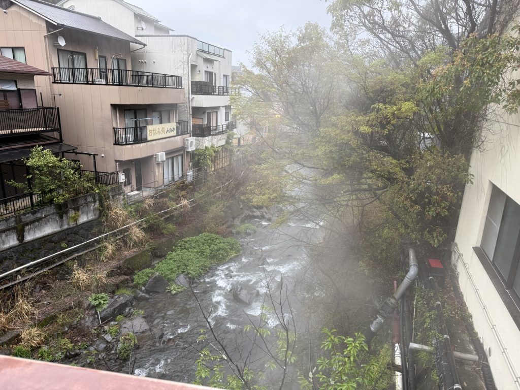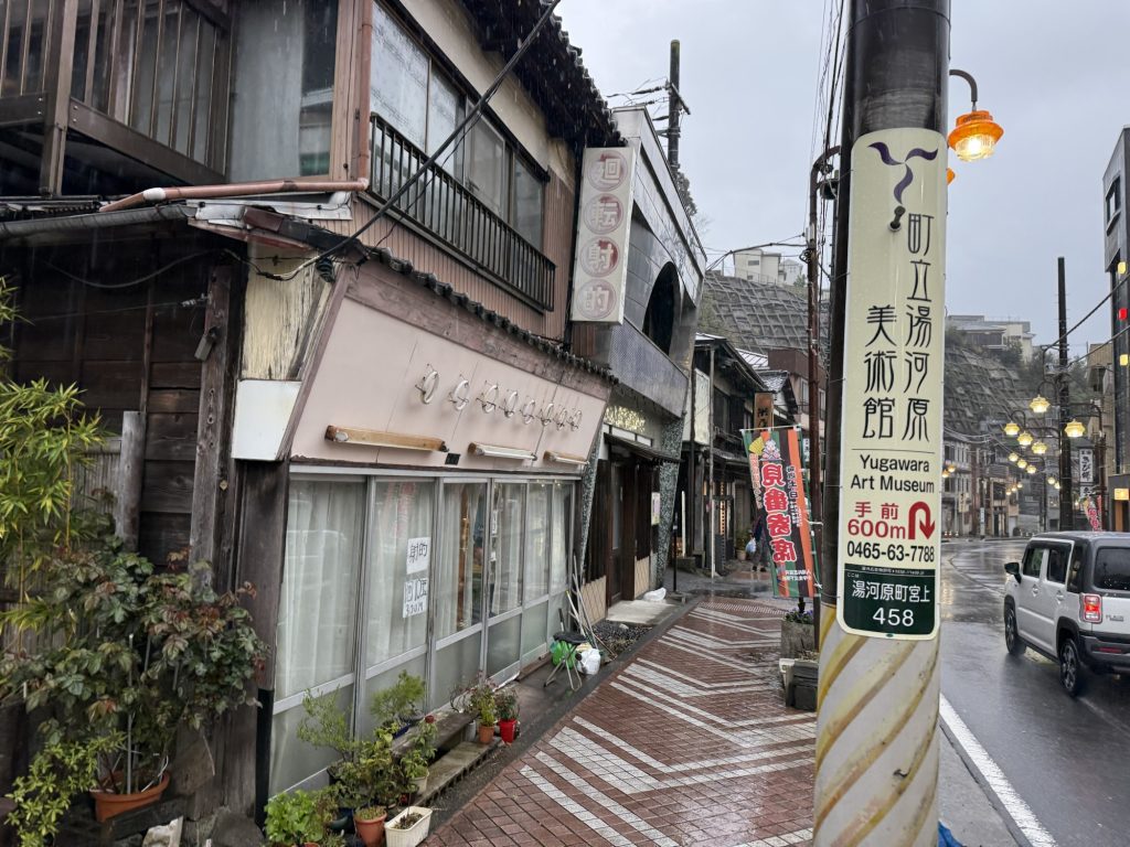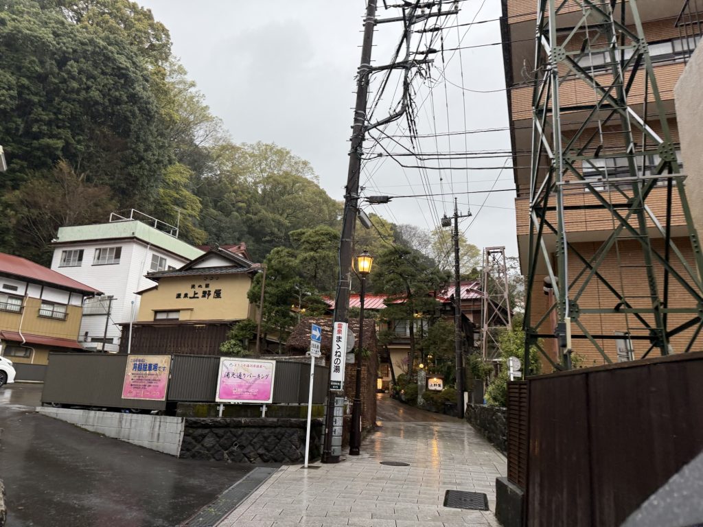 目的地を定めていなかったので、とりあえず温泉場中央バス停で降りてみる。湯河原温泉は縦長に点在していて、ここが真ん中くらいかな、駅から10〜15分だ。とにかく結構な雨なので、近くの源泉掛け流しの日帰り湯を探すか。