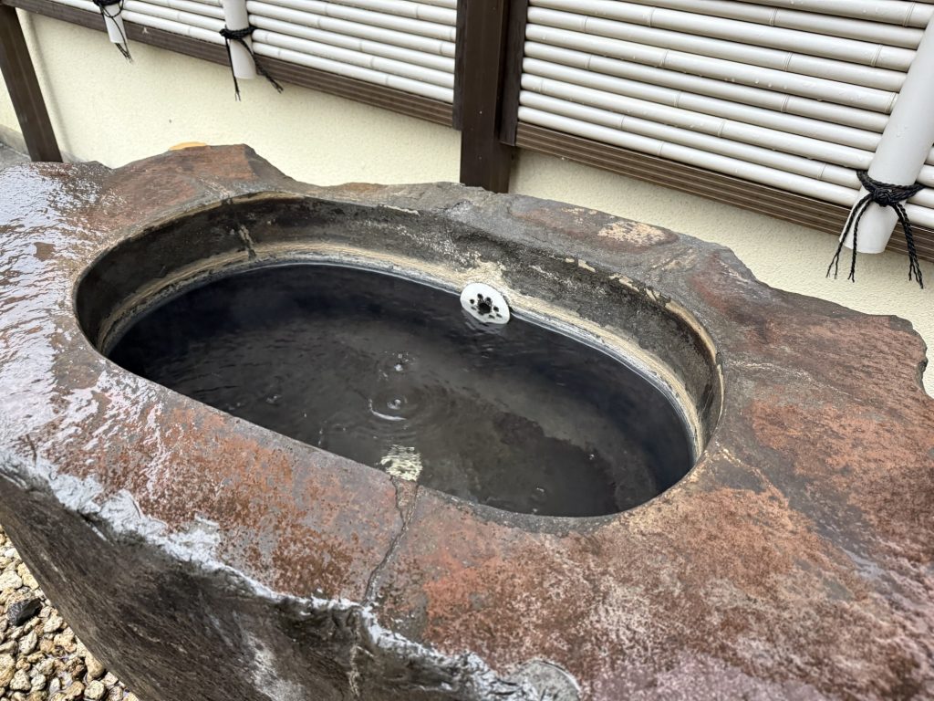 源泉が高温なので加水をして42℃にしているということだけど…あっつ!しばらく人が入ってなかったからか、それどころの話ではない。最初に湯を少し混ぜ混ぜ。