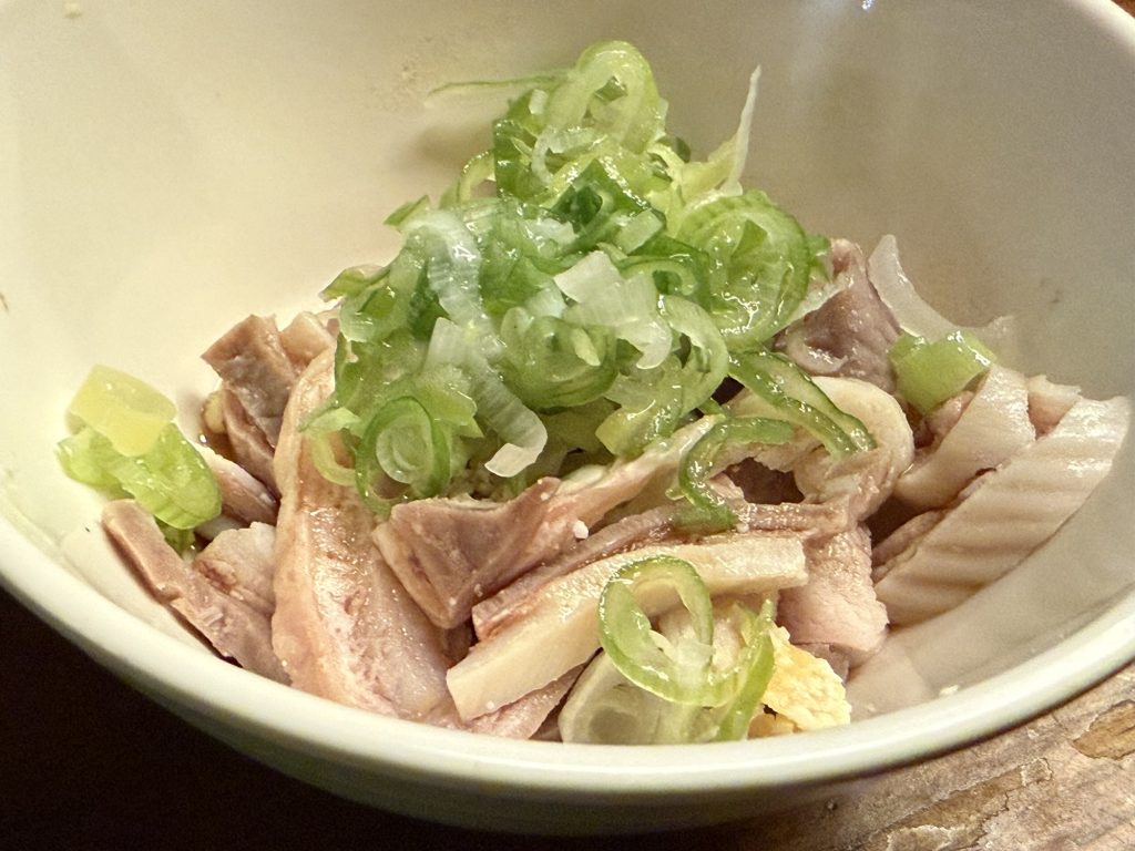 そして、ガツ刺し(300円税込)をポン酢で。これがまたうまい。むにっととコリコリ食感のハイブリッド。このポン酢もいいね。