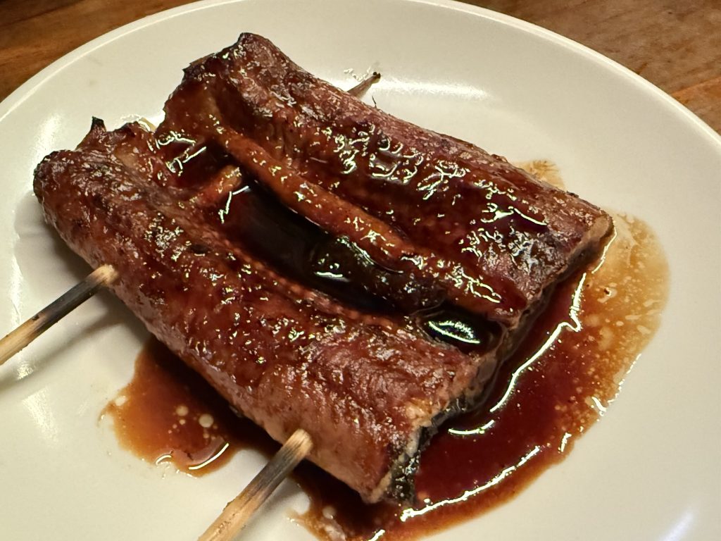 うなぎ(350円税込)。やきとり頼めよと思うかもだけど、色々魅力ある品書きがあるもので。この鰻がこれまたほあほあ…溶けてなくなる〜。濃厚な醤油ダレで酒が進むぜ。