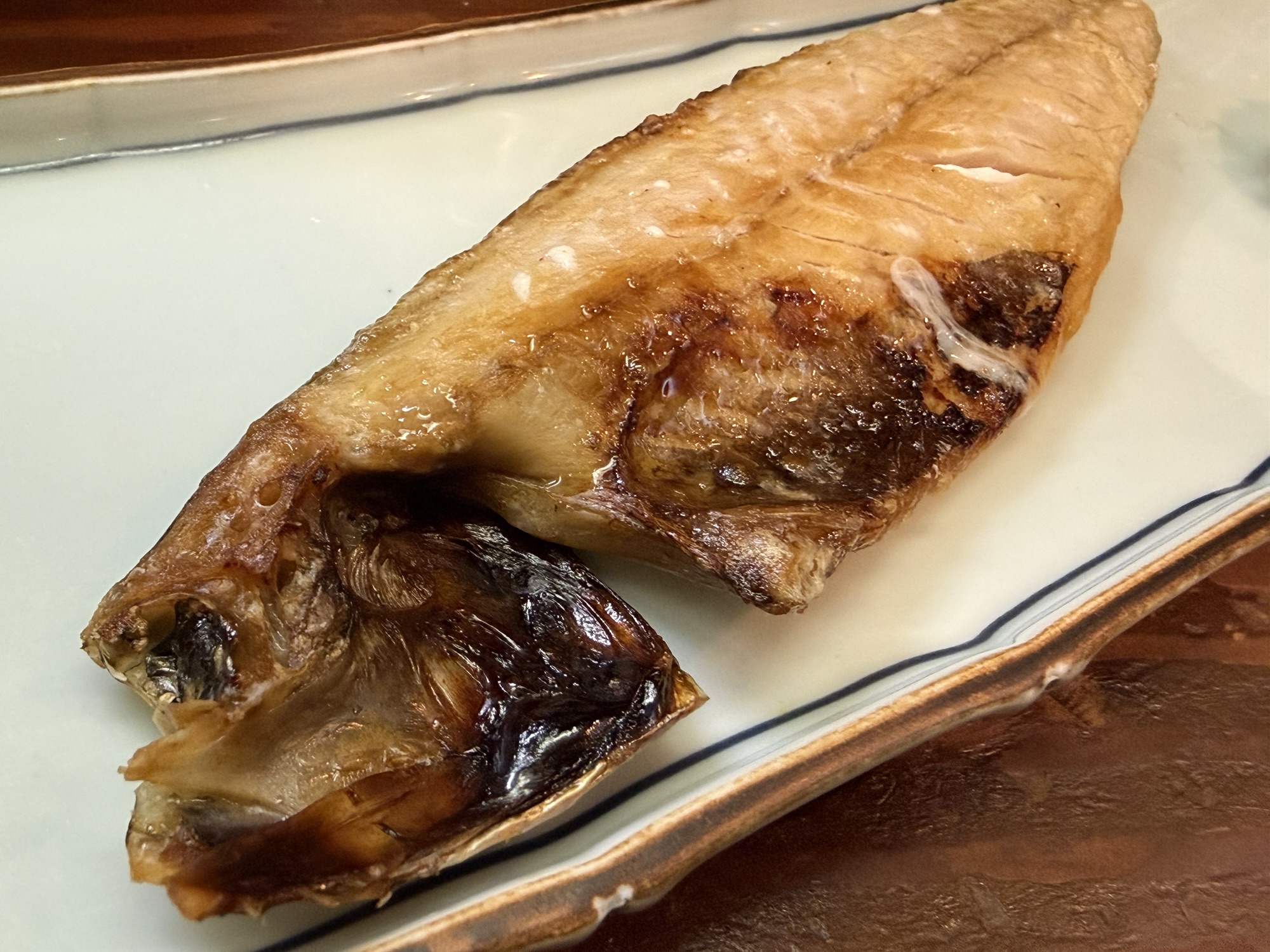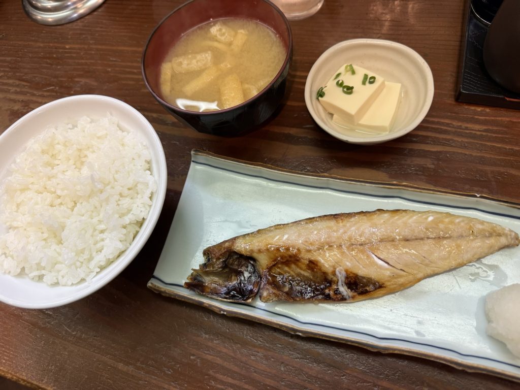さば塩は半身の干物を焼き上げたもの。なので、少し塩味がきいている感じでご飯が進むアイテム。
